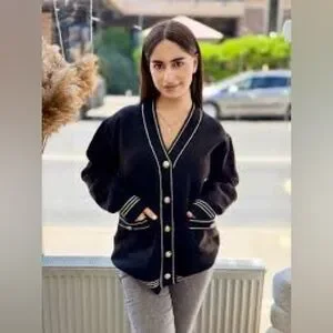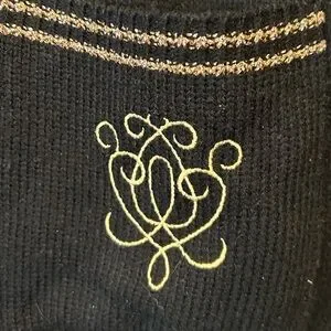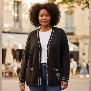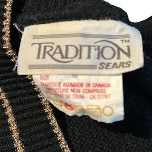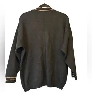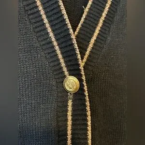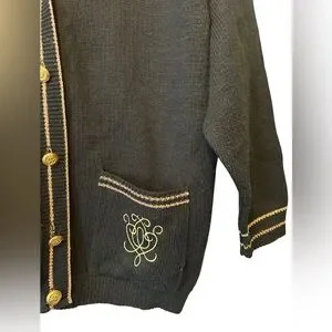 Vintage Sears V-Neck Cardigan with Gold Buttons and Metallic Trim
