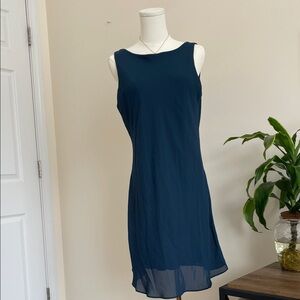 Chic Sleeveless Navy Midi Boat Neck Dress