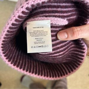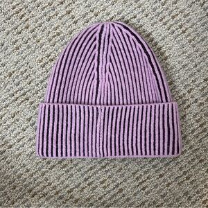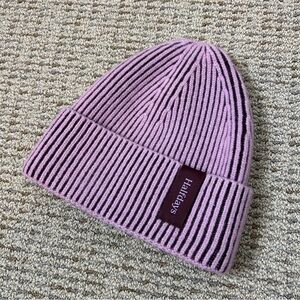Halfdays Merino Beanie Striped 100% Wool Winter Hat Pink Purple