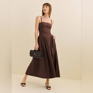 NWT Reformation Katarin Linen Cafe Brown Drop Waist Midi Dress Size 2