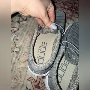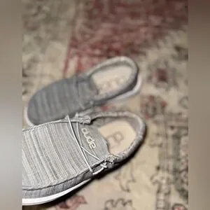 Kids Hey Dude Wally Youth Linen Gray Stone White Shoe Sz Y3-L4 Like New