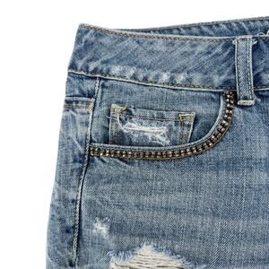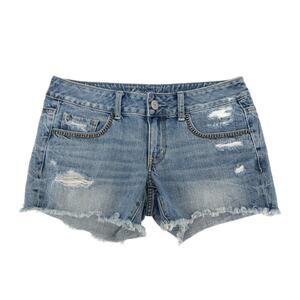American Eagle Y2K Rhinestone Beaded Denim Shorts size 6 Distressed 4" Cutoffs