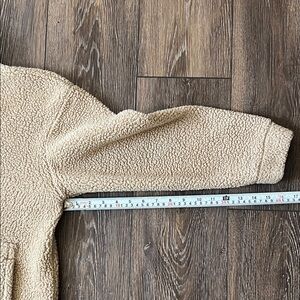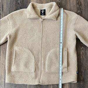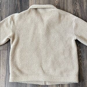 Stay warm and stylish with this cozy tan sherpa jacket. Perfect for casual outings.