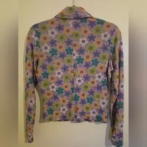 Add a pop of color to your wardrobe with this vibrant floral crop top. Perfect for casual outings or a fun night out.Boho,70's, Preppy, Cottage core, Bodycon.Beautiful button detail.