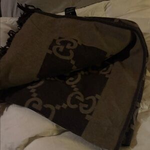 Luxurious Gucci throw blanket. Features iconic logo pattern. Soft and stylish. Perfect for any home decor.