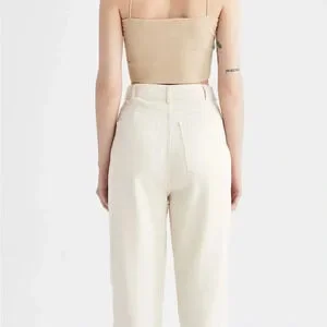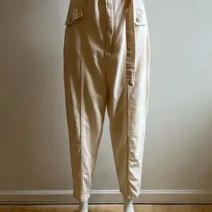 De Facto Twill Hogh Waist Tapered Leg Pants Beige Ivory Trousers Cotton 10 US