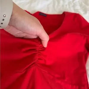 Elevate your style with this vibrant red V-neck top. Featuring a flattering ruched design, it's perfect for any occasion.