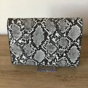 Madison West Faux Leather Snakeskin Clutch Crossbody Bag with Chain Detail NWOT