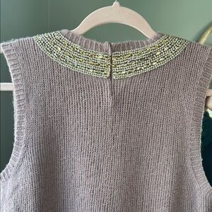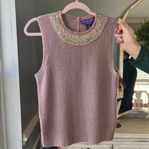 Elegant sleeveless sweater. Mauve color with embellished collar. Perfect for layering.