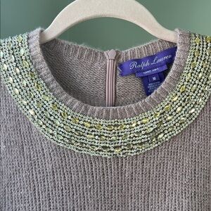 Ralph Lauren Purple Label Mauve Sweater with Embellished Collar