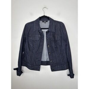 Talbots Womens Dark Wash Denim Trucker Jacket Blue Stretch Size 10P