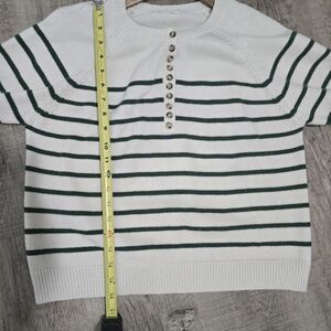 Cute preppy staple with button detail at neckline. Easy everyday piece for fall or spring.