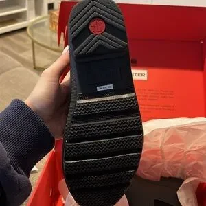 Sleek matte black ankle boots by Hunter. Ideal for rainy days. Brand new, fresh in the original box/packaging.