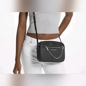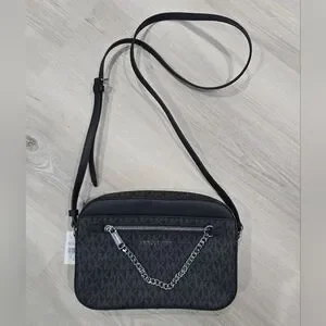 Michael Kors Jet Set Large Logo Crossbody Bag (Black) NWT