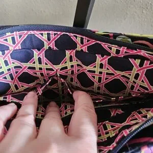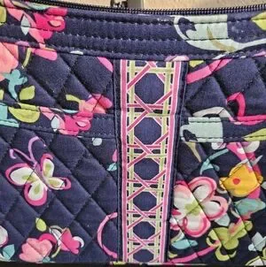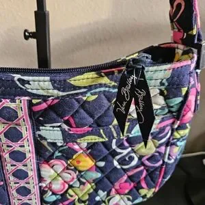 Chic and colorful Vera Bradley floral quilted shoulder bag, perfect for any occasion. Features a vibrant design with a comfortable strap.