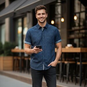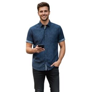 Robert Graham Men’s short sleeve classic button down blue paisley print shirt XL