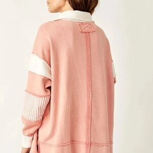 Free people We The Free Chic pink sweatshirt with white accents. Features striped sleeves. Relaxed fit for comfort. Size S