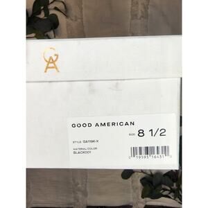 A flared block heel, translucent strap and square toe make these slide sandals a contemporary fashion choice from Good American. Features: 2 1/4" heel, cushioned footbed, synthetic upper, lining and sole. Great to wear with your favorite pair of jeans, or your favorite dress. Please note the box shows 8.5 but the shoes are size 8. Comes with a dust bag for storage!
