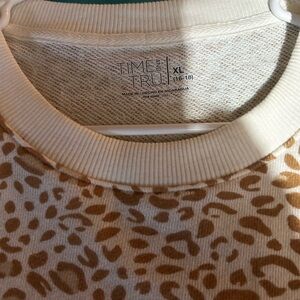 Chic leopard print top by Time and Tru. Features a comfortable crew neck. Ideal for everyday style.