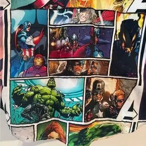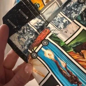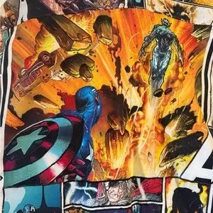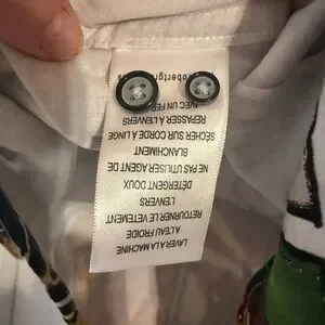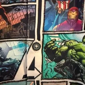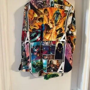 Vibrant comic print design. Long sleeves. Button-up style. Unique and bold look.
