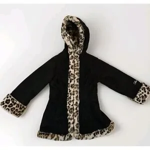 Hawke & Co Black Toddler Jacket with Leopard Trim