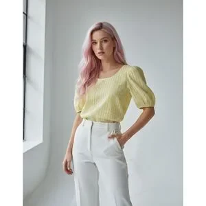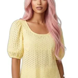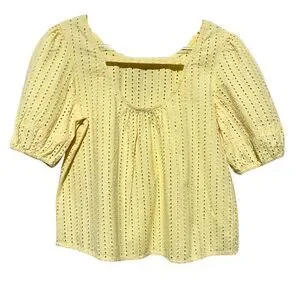 New Loft Eyelet Cutout Back Bubble Sleeve Top Butter Yellow