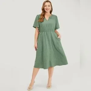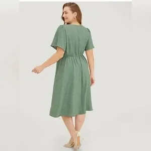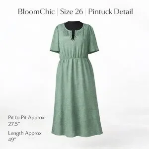 BloomChic Size 26 Sage Green Midi Dress Pintuck V-Neck Plus Size Spring