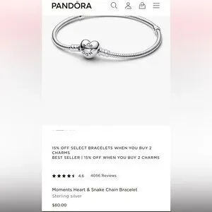• Pandora Moments Heart Clasp Snake Chain Bracelet — 7.5 in