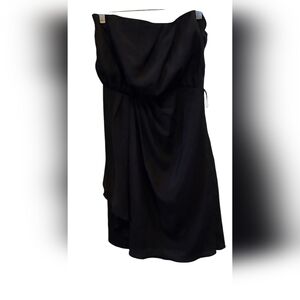 This stunning black sheath dress from Express features a chic ruched design that adds texture and elegance. The strapless neckline and sleeveless cut make it perfect for a cocktail party or a night out. Its sleek silhouette and knee-length hem offer a timeless and sophisticated look.