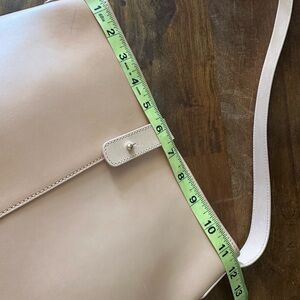 Discover the elegance of this tan leather shoulder bag, perfect for any occasion. Its sleek design and neutral color make it a versatile addition to your wardrobe. Inner wallet inside. Multiple pen marks on outer leather. Will likely patina/fade over time. Please refer to all photos for close ups! Never used