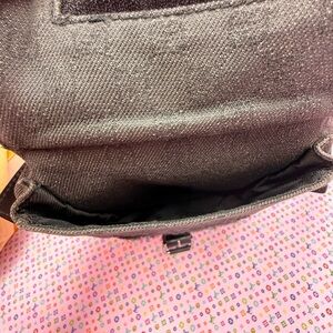 Beautiful Gucci black GG monogram denim crossbody featuring black leather trim and adjustable shoulder strap. Classic flap front with buckle detail and exterior pocket for easy access.