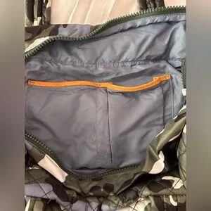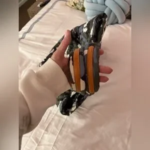 Includes dust bag. In blue/gray camo colorway.