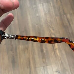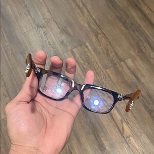 Tortoiseshell Brown Chrome Heart Glasses Square Glasses with Silver Accents