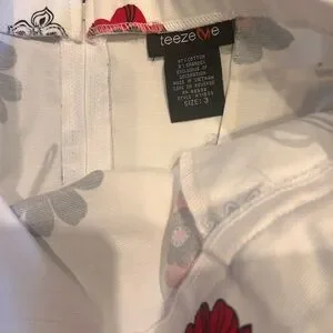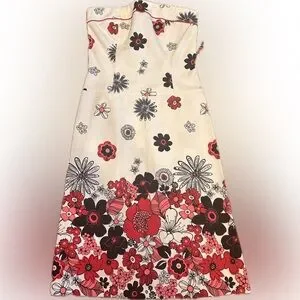 Teeze Me bold floral strapless White/black/red/pink artsy mini Dress size 3