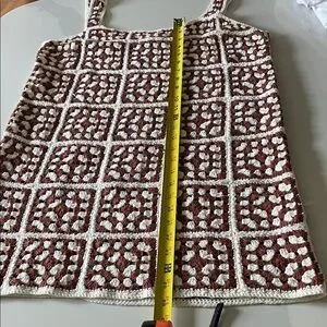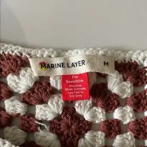 Marine Layer Celeste Crochet Dress, known for its brown and white granny square pattern. NWOT