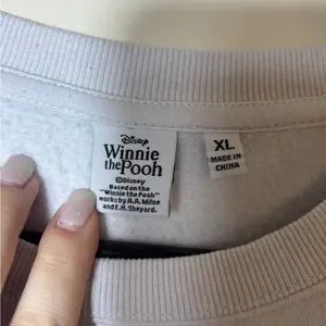 Disney Winnie the Pooh White Fleece Sweatshirt Women XL Crew Neck Long Sleeve