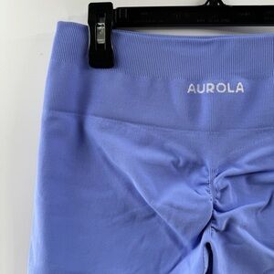 AUROLA Power Scrunch Butt workout shorts for women in a size medium in the color Jacaranda. These seamless high waist biker shorts feature tummy control support and a flattering scrunch back detail that enhances and contours your shape. Made from soft, stretchy performance fabric that moves comfortably during lifting, yoga, running, or gym sessions. The high-rise waistband provides support and stays in place throughout your workout. Perfect for activewear or athleisure styling. Overall in great condition.