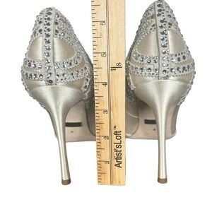 BADGLEY MISCHKA ROUGE EMBELLISHED EVENING SHOES IVORY SATIN SZ 8 NEW WITHOUT BOX