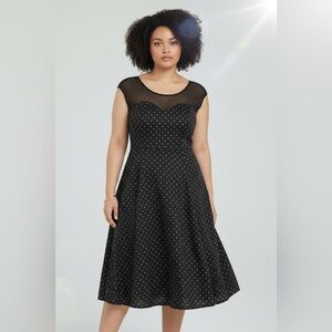 Torrid Fit & Flare Mesh Bodice Polka Dot MIDI Knee Length Dress Pin Up Size 18