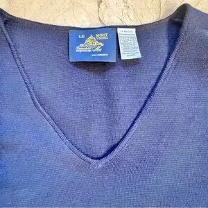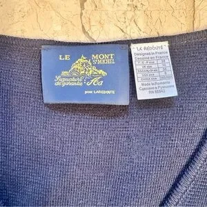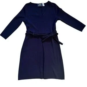 Le Mont St Michel Wool knit pleat french v neck belt tie navy dress Sz 8