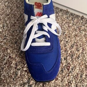New Balance classic retro sneakers in vibrant royal blue with white logo detail.
