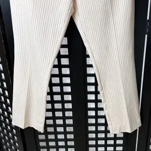 Chic, polished, and endlessly versatile. These Anthropologie Essential Slim pants feature a flattering tailored silhouette with subtle stripe detailing on a creamy neutral base. The slim fit creates a clean, elongating look while still offering comfort for all-day wear.
