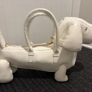 This item is brand new with our boutique tags attached. This item is a white dog purse with gold trimmings (eyes, buckles, zippers, and fasteners). Very cute statement purse. Sure to turn heads and gain lots of compliments. Perfect for the Spring. For more information or more women and girls accessories visit our boutique website: www.aababoutique.com