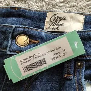 New with tags Cosmic Blue Love Adrianne Distressed Boyfriend jean size 14/32. Purchased from Stitch Fix (Stitch Fix exclusive). Color is leader of the pack (medium dark wash).