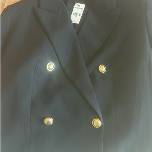 Sophisticated black blazer featuring stylish gold buttons. NWT but does have a minor imperfection in the back, shown in photos.