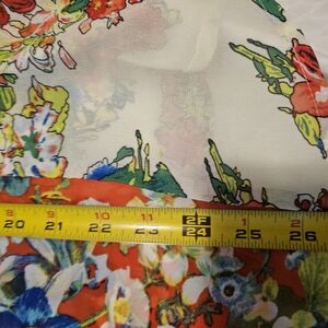 Fig and flower womens blouse 3/4 sleeve, vibrant floral sheer blouse with a mix of red, blue, and white colors. Excellent condition sz M, bundle and save.