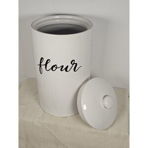 The Threshold White Flour Stoneware Storage Container with Lid is a farmhouse-style kitchen essential perfect for storing flour or other dry goods. Made from durable stoneware with a solid white color and a cylindrical shape, this container stands at 10 inches tall with a diameter of 6 inches. The lid ensures freshness and prevents pests from getting into the container, making it a practical and stylish addition to any kitchen storage cabinet. Made in China by the brand Threshold, this flour jar is both functional and visually appealing for food lovers and home cooks.
