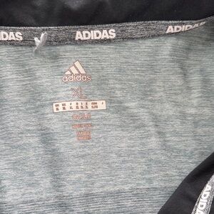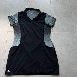Chic mini dress by Adidas. Black body with gray gradient sleeves. Ideal for sporty and casual wear.