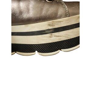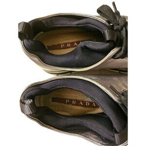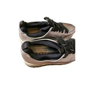 Prada Platform Silver Metallic Sport Leather Sneaker Shoes SZ 37