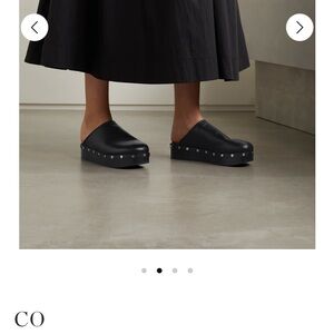 Just like the popular '70s style they're modeled after, Co's clogs are set on thick wooden soles punctuated with shiny silver studs. They're made from black leather and have rounded toes.